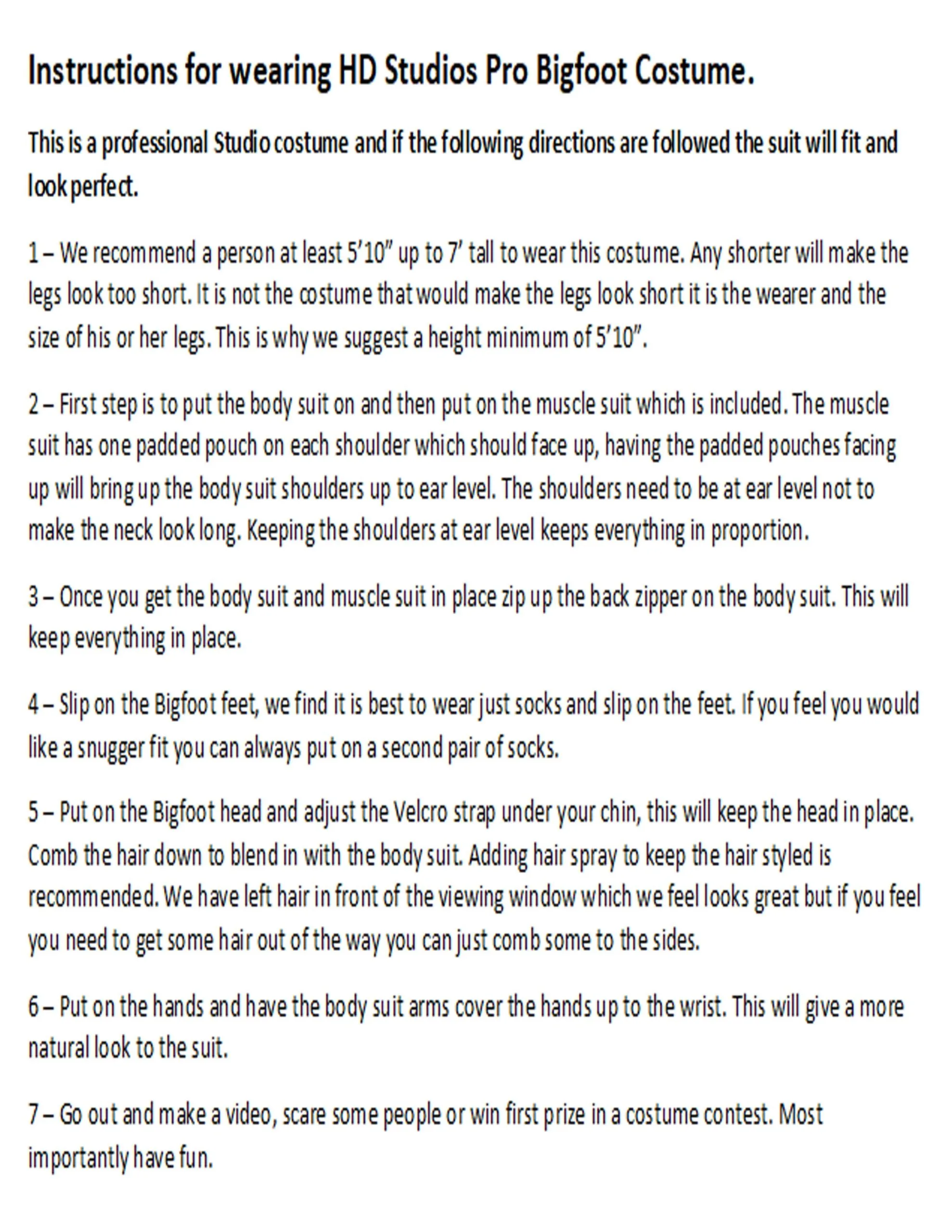 I just got my Bigfoot costume and I have to say this product is highly detailed, well constructed, Fits awesome! Definitely be buying more products soon. If you need anything Halloween this is the right place for you!!! ★★★★★ A. Saluse